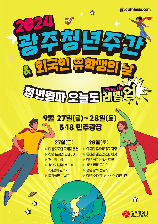 2024 광주청년주간과 외국인 유학생의 날 행사 상세 프로그램은 광주청년주간 누리집(gjyouthfesta.com)에서 확인할 수 있다.